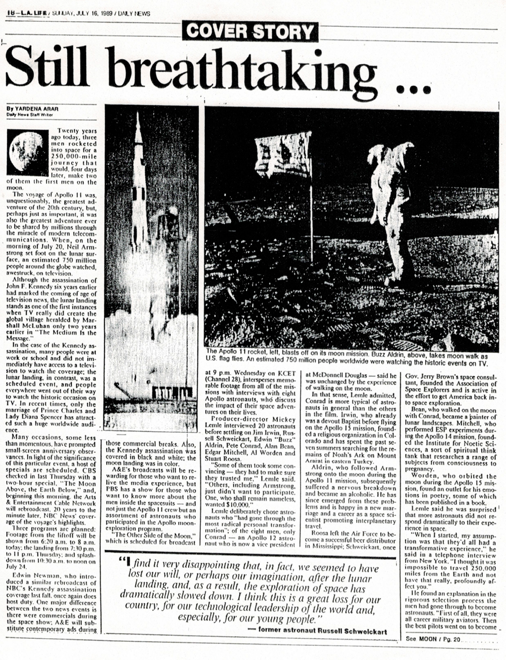 Gardella, Kay; The Men on the Moon: Astronauts Recall Lunar Experience in PBS Documentary; Daily News: New York’s Picture Newspaper; July 18, 1989