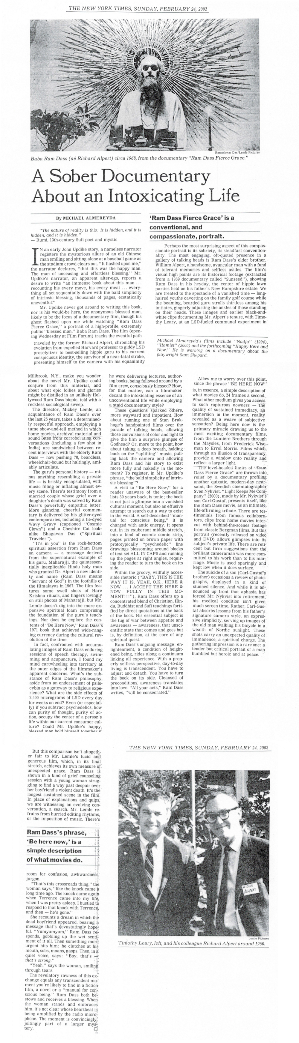Macdonald, Moira; ‘Ram Dass’ is a Journey into Spiritual Leader’s Mind; The Seattle Times; H20; August 23, 2002